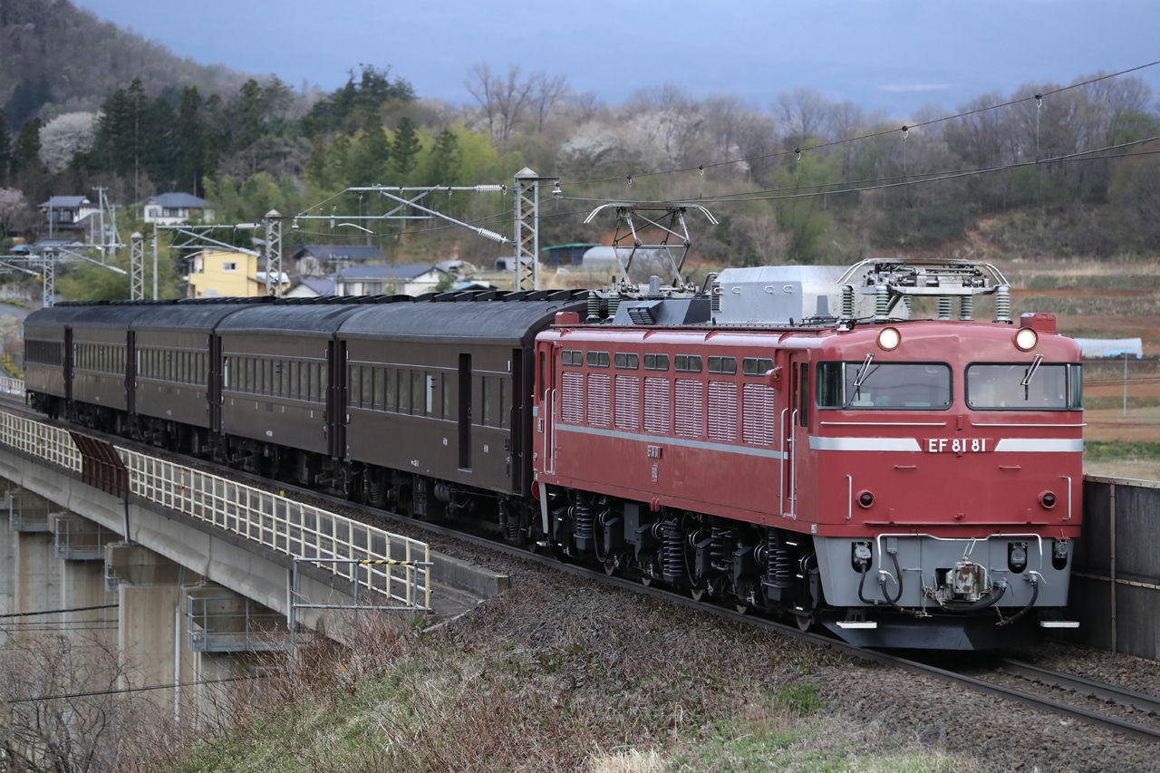 2018年04月16日 2018/4/16運転 旧型客車仙台返却回送(東北本線) 回9122レ EF81-95+旧型客車5B回9122レ EF81-95+旧型客車5B回9122レ EF81-95+旧型客車5B回9122レ EF81-95+旧型客車5B4月16日、同14、15日に仙台地区で運転された多客臨時列車に使用された、高崎車両センター高崎支所の旧型客車5両が仙台~福島~郡山~宇都宮~尾久間で回送された。全区間で田端運転所のEF81-81が牽引した。 タグ :#JR東日本 カテゴリなしの他の記事 < 前の記事次の記事 >