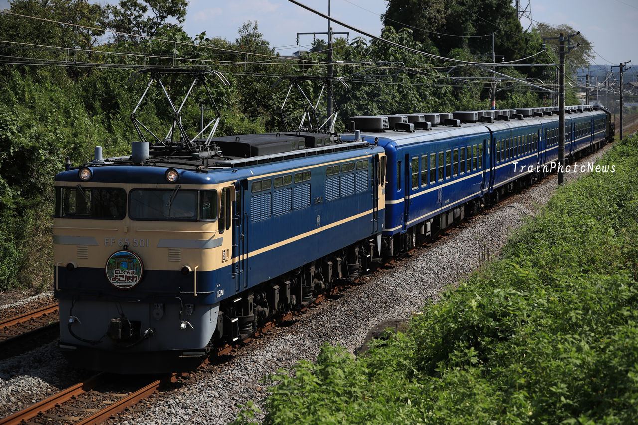 2019年09月15日 2019/9/15運転 EF65-501牽引ELぐんまよこかわ 9135レ EF65-501+12系5B+C61-20(ELぐんまよこかわ)9月15日、多客臨時列車「ELぐんまよこかわ」が高崎~横川間で運転された。高崎車両センター高崎支所のEF65-501とC61-20がプッシュプルで同区の12系客車5両を牽引するものでヘッドマークが掲出された。 タグ :#JR東日本 カテゴリなしの他の記事 < 前の記事次の記事 >