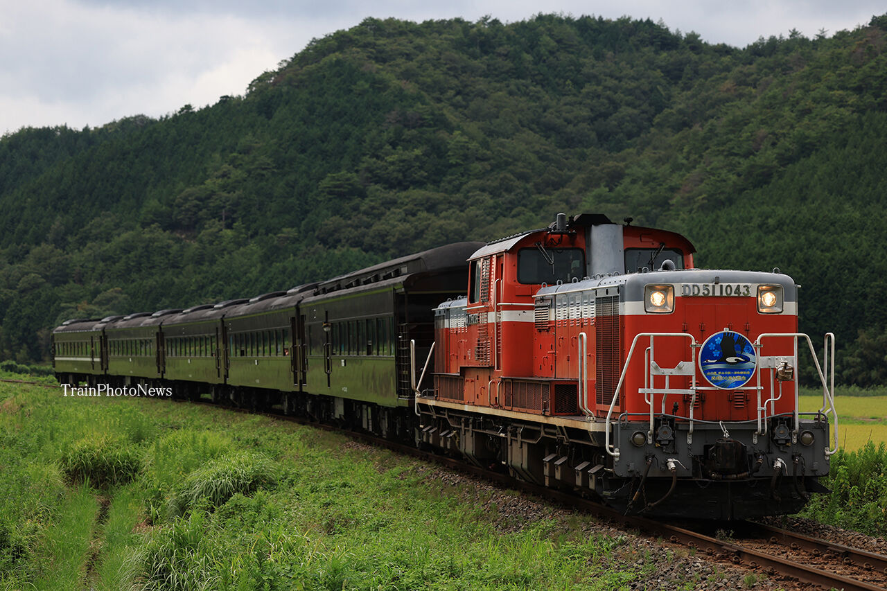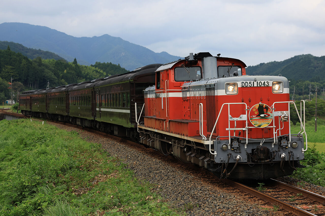 8522レ DD51-1043+35系5B(DLやまぐち号、山口線新山口~津和野間開通100周年記念HM掲出)