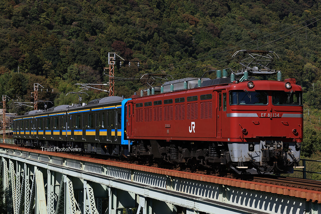 2023年10月23日 2023/10/23運転 鶴見線用E131系T3編成配給 配9730レ EF81-134+E131系3B配9730レ EF81-134+E131系3B配9644レ EF81-134+E131系3B10月23日、鎌倉車両センター中原支所のE131系3両(鶴見線用T3編成)が総合車両製作所新津事業所を出場し、越後石山~長岡~大宮~府中本町~新鶴見信号場~鶴見~国府津間で配給輸送された。全区間で新潟車両センターのEF81-134が牽引した。 タグ :#JR東日本 カテゴリなしの他の記事 < 前の記事次の記事 >