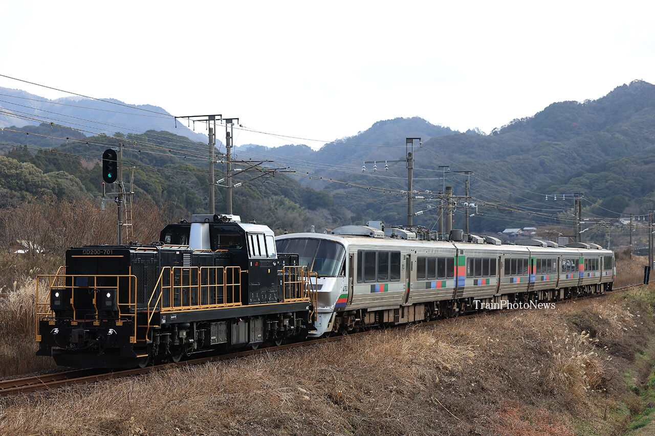 2024年01月13日 2024/1/13運転 DD200-701牽引783系廃車回送 回9524レ DD200-701+783系4B回9524レ DD200-701+783系4B回9526レ DD200-701+783系4B1月13日、南福岡車両区に所属し大分車両センターに留置されていた783系4両(CM3編成)が廃車に伴う小倉総合車両センター入場のため大分~西小倉間で回送列車として運転された。全区間で熊本車両センターのDD200-701が牽引した。 タグ :#JR九州 カテゴリなしの他の記事 < 前の記事次の記事 >