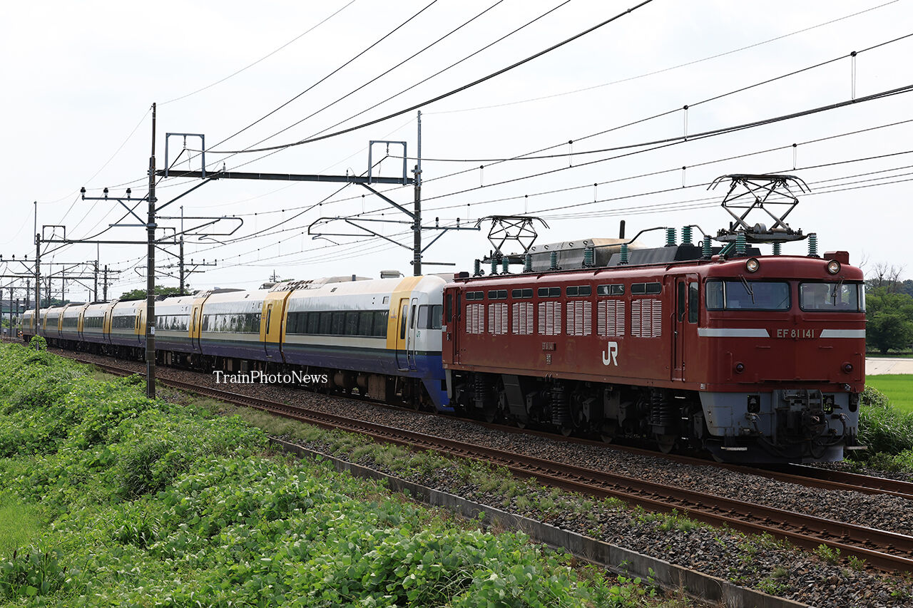 2024年07月17日 2024/7/17運転 255系廃車配給 配9722レ EF81-141+255系9B配9141レ EF81-141+255系9B配9141レ EF81-141+255系9B配9141レ EF81-141+255系9B7月17日、幕張車両センターの255系9両(Be-01編成)が廃車に伴う郡山総合車両センター入場のため新習志野~西船橋~大宮~郡山間で配給輸送された。全区間で新潟車両センターのEF81-141が牽引した。 タグ :#JR東日本 カテゴリなしの他の記事 < 前の記事次の記事 >