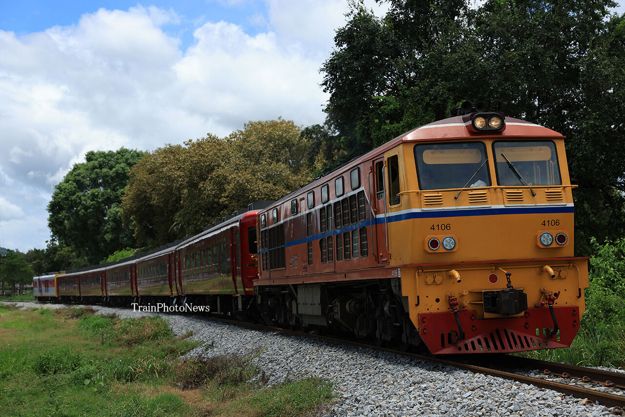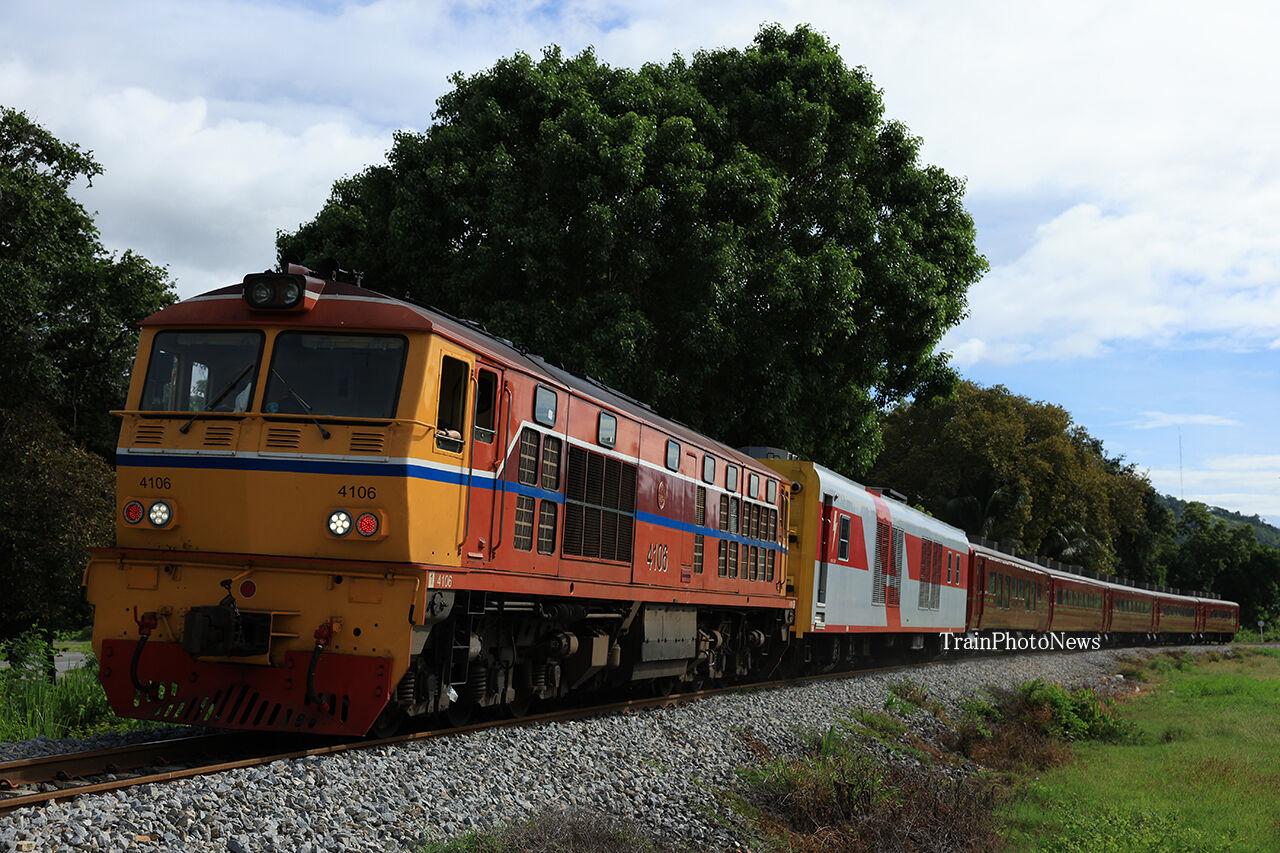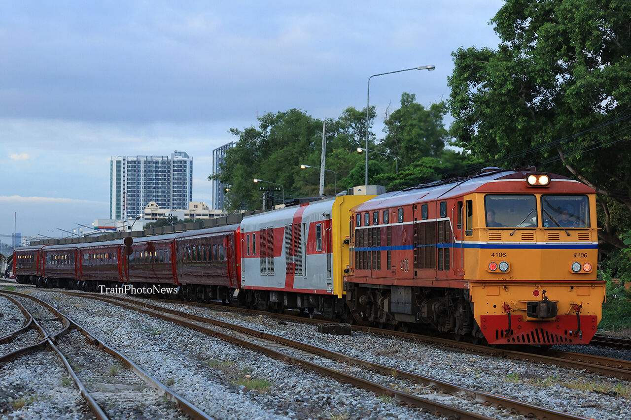 8月31日、タイ国有鉄道でALS4106がAPVC1108とASR400系(ROYALBLOSSOM)5両を牽引する