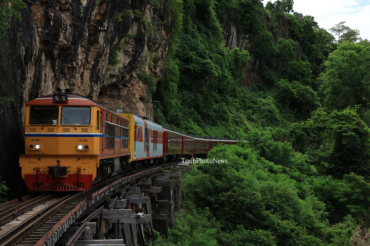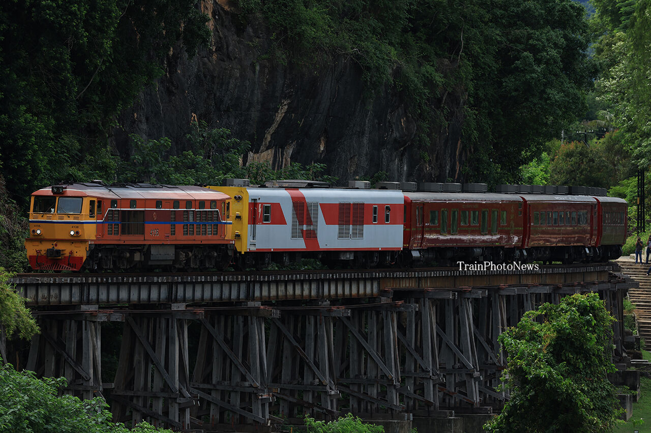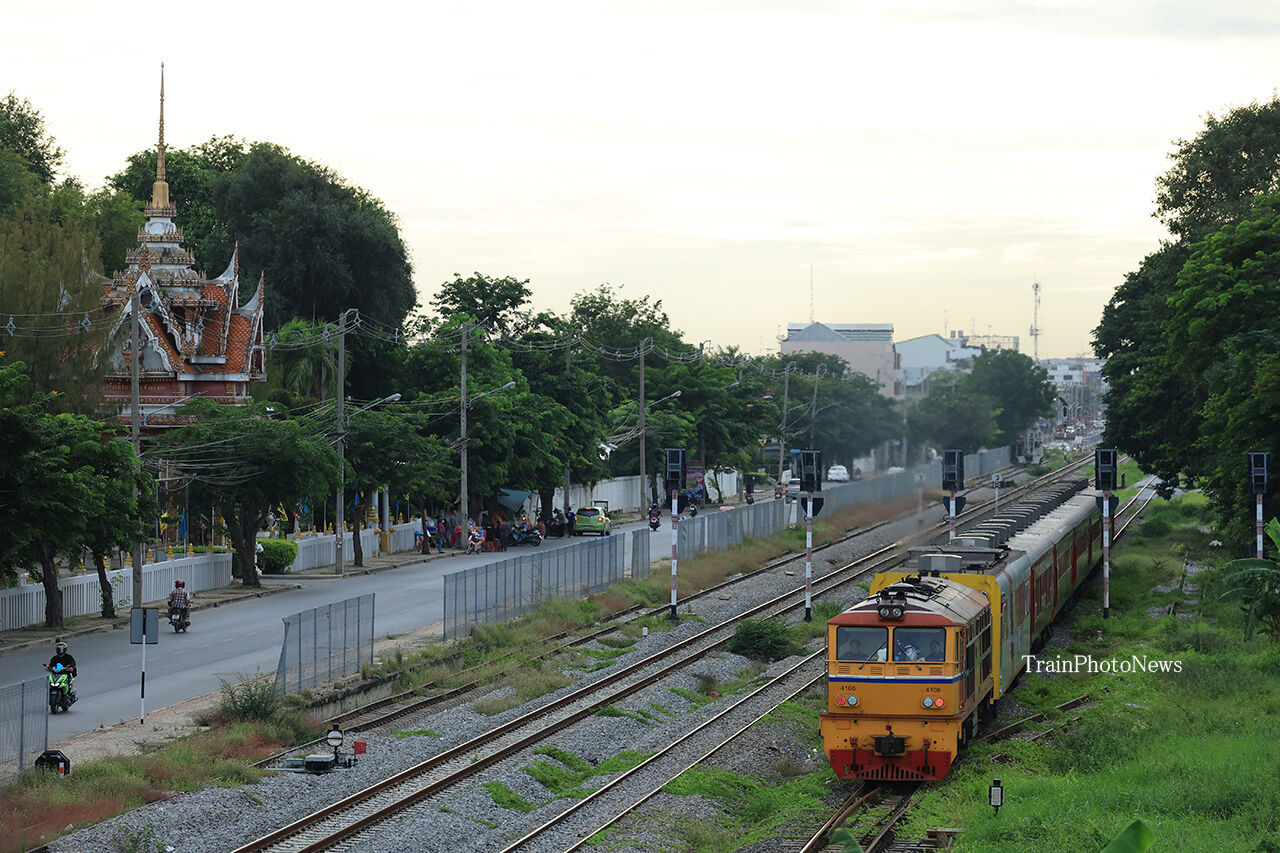 8月31日、タイ国有鉄道でALS4106がAPVC1108とASR400系(ROYALBLOSSOM)5両を牽引する