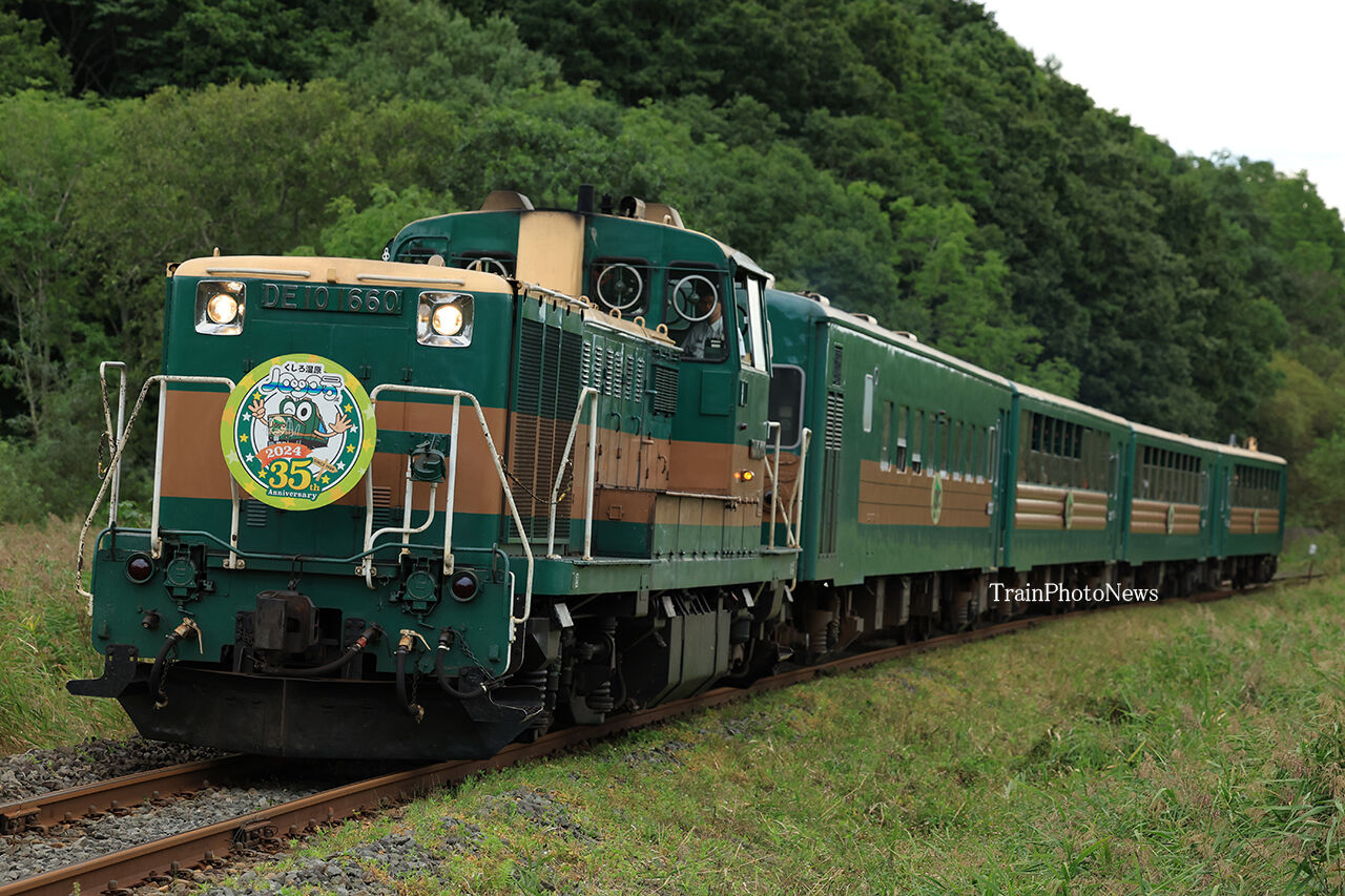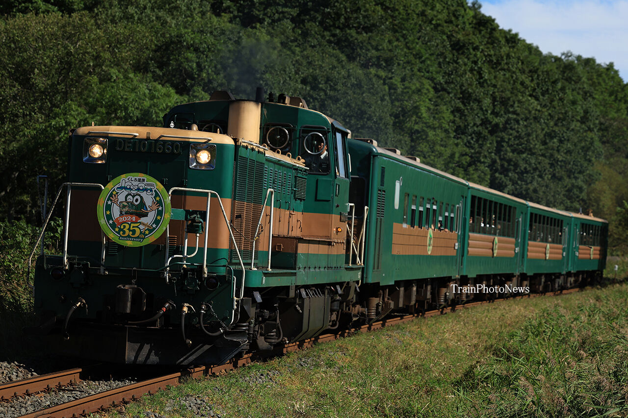 2024年09月12日 2024/9/12運転 くしろ湿原ノロッコ号 9332レ DE10-1660+51系改4B(くしろ湿原ノロッコ2号)9334レ DE10-1660+51系改4B(くしろ湿原ノロッコ4号)9月12日、多客臨時列車「くしろ湿原ノロッコ号」が釧路~塘路間の2往復で運転された。釧路運輸車両所のDE10-1660が同区の51系改造客車4両を牽引するもので「くしろ湿原ノロッコ号35th」のヘッドマークが掲出された。 タグ :#JR北海道 カテゴリなしの他の記事 < 前の記事次の記事 >