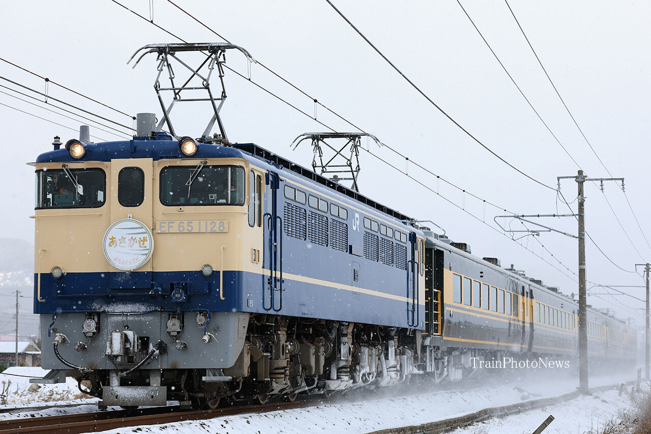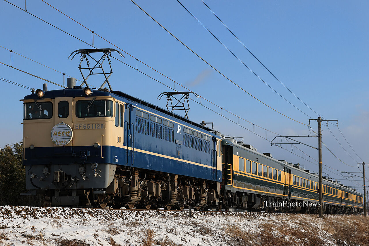 2025年02月08日 2025/2/7~8運転 サロンカーあさかぜ 9313レ EF65-1128+14系改5B(サロンカーなにわ、サロンカーあさかぜ)9313レ EF65-1128+14系改5B(サロンカーなにわ、サロンカーあさかぜ)2月7日から8日にかけて、団体臨時列車「サロンカーあさかぜ」の下り列車が大阪~下関間で運転された。網干総合車両所宮原支所の14系サロンカーなにわ5両を使用したもので全区間を下関総合車両所運用検修センターのEF65-1128が牽引した。「あさかぜ」のヘッドマークが掲出された。 タグ :#JR西日本 カテゴリなしの他の記事 < 前の記事次の記事 >
