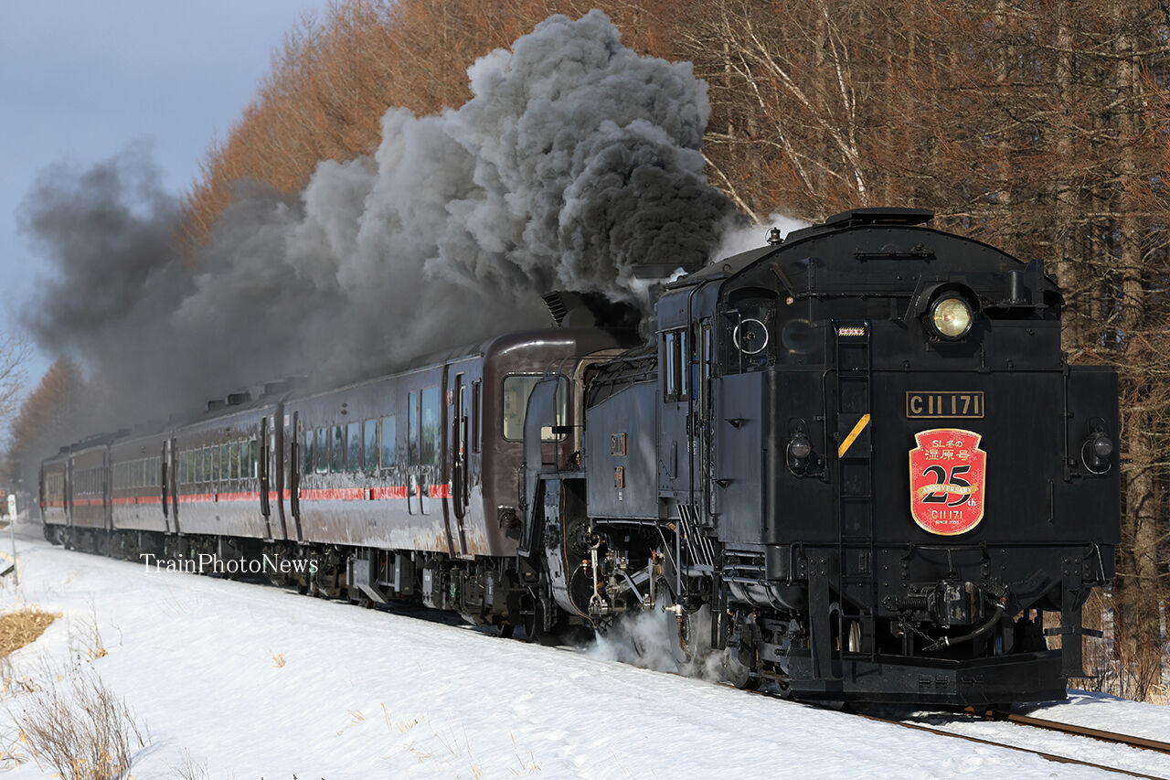 2025年02月21日 2025/2/21運転 SL冬の湿原号 9380レ C11-171+14系1B+スハシ44-1+14系3B(SL冬の湿原号)9381レ C11-171+14系3B+スハシ44-1+14系1B(SL冬の湿原号)2月21日、多客臨時列車「SL冬の湿原号」が釧路~標茶間の往復で運転された。釧路運輸車両所のC11-171が同区の14系客車4両とスハシ44-1の5両を牽引した。「SL冬の湿原号25th」のヘッドマークが掲出された。 タグ :#JR北海道 カテゴリなしの他の記事 < 前の記事次の記事 >