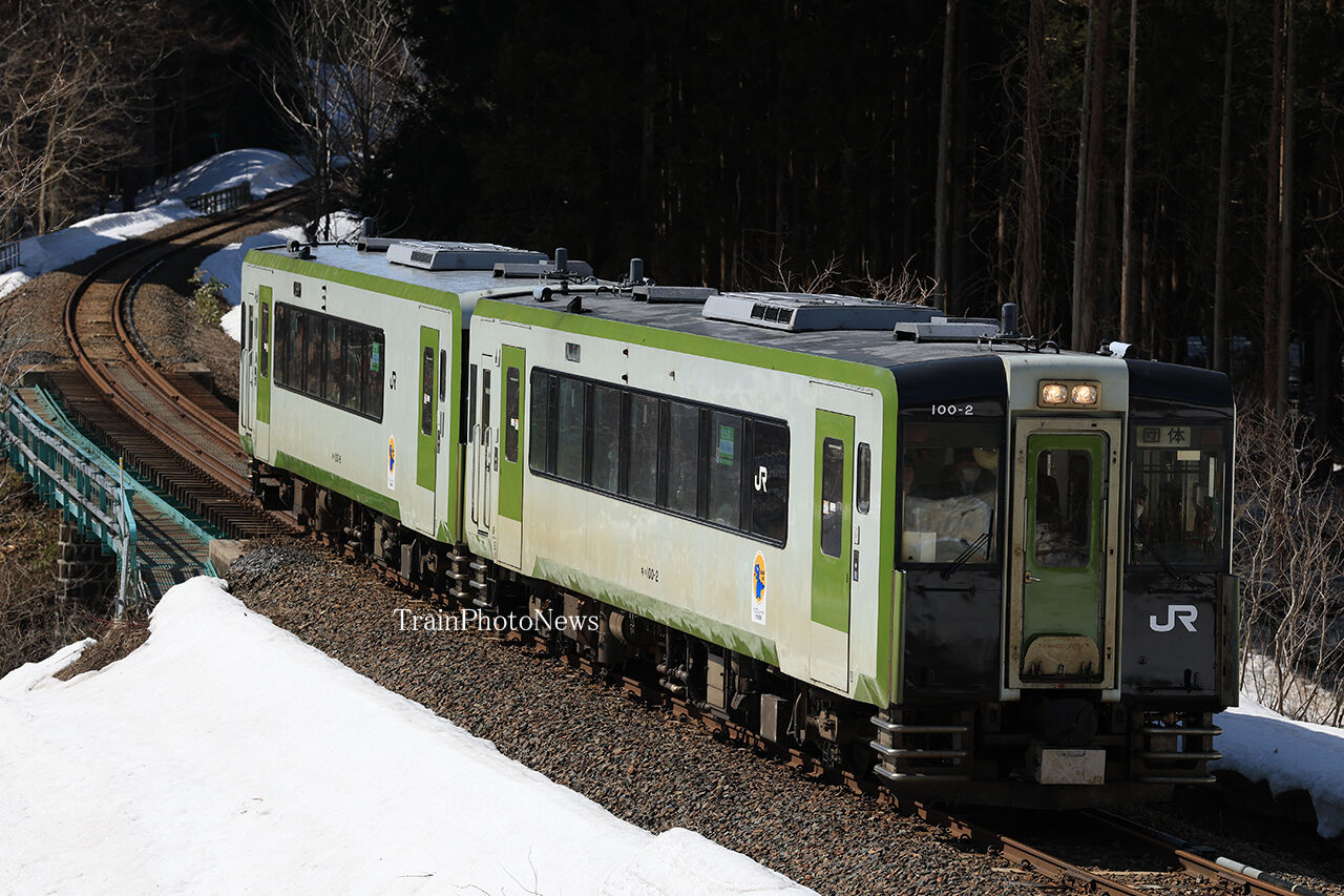 盛岡車両センター一ノ関派出所のキハ100系2両を使用したもので
