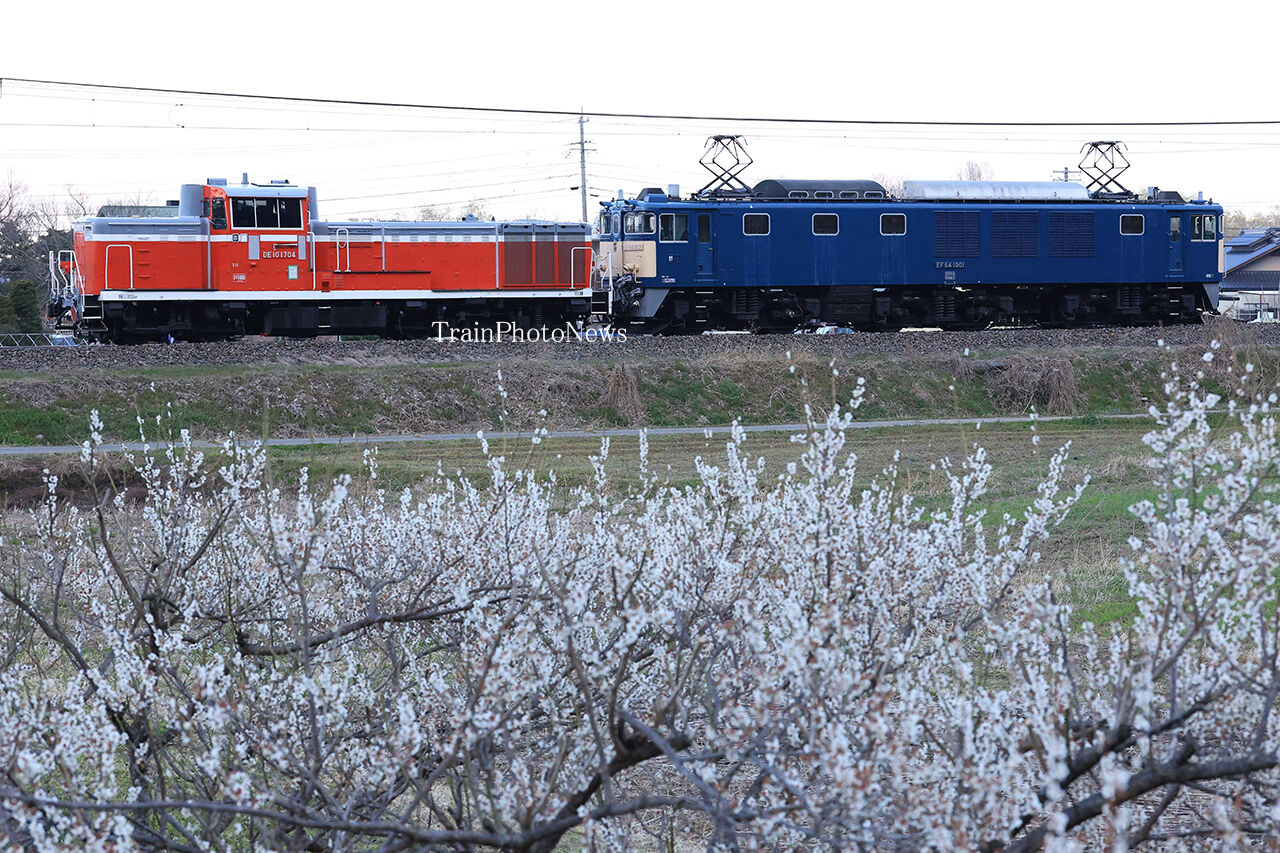全区間でぐんま車両センターのEF64-1001がDE10-1704を牽引した。