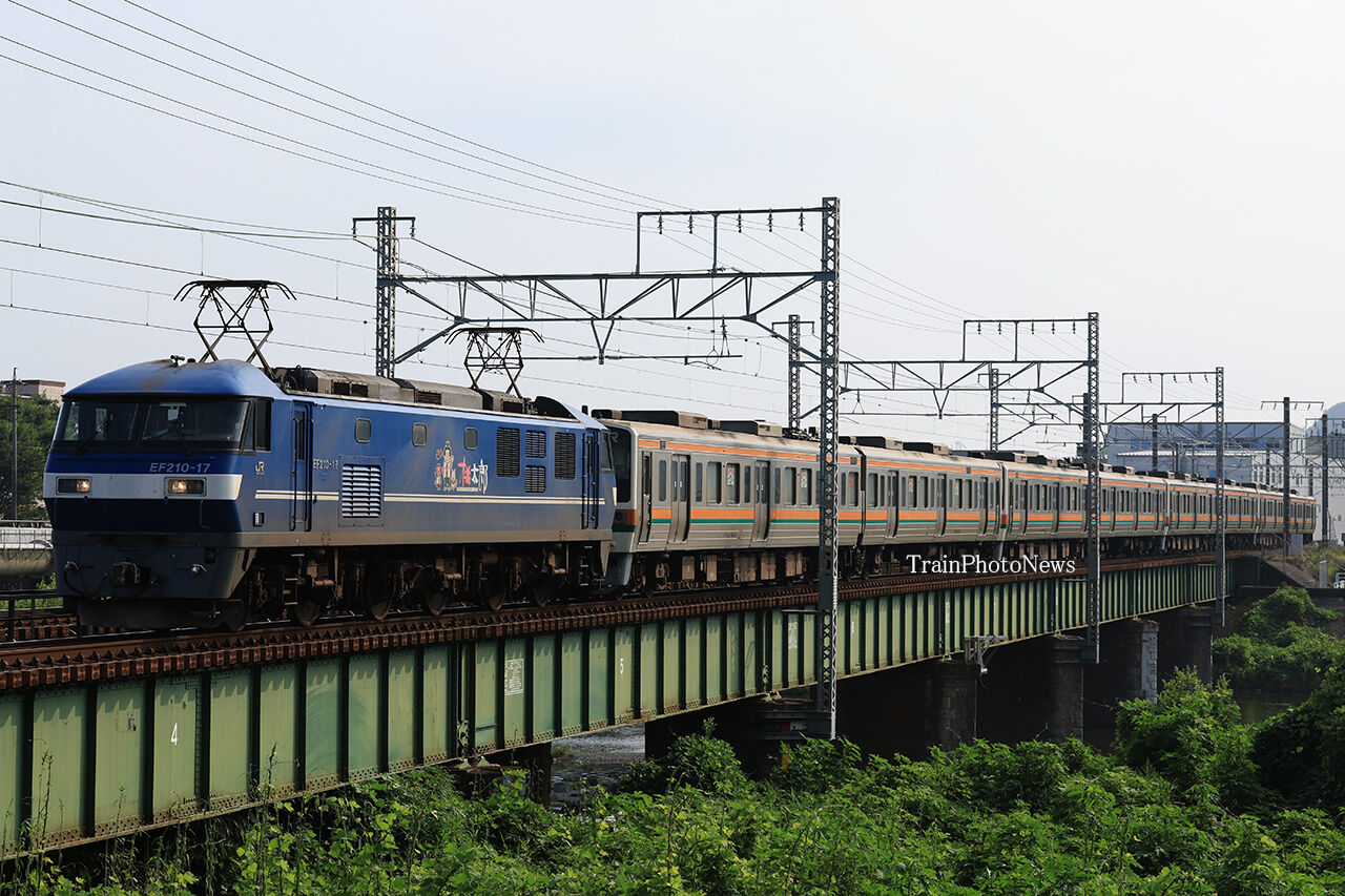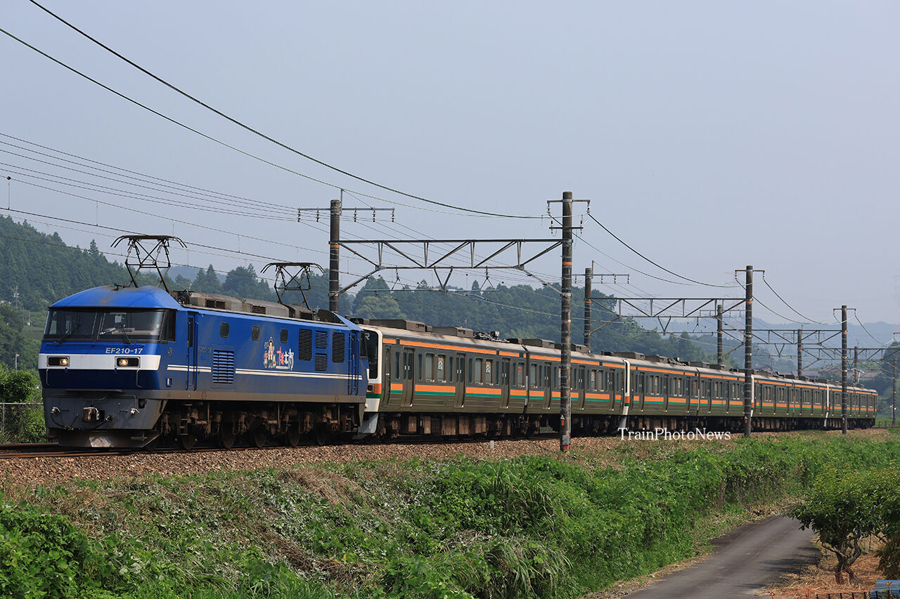 2025年07月05日 2025/7/5運転 211系流鉄譲渡甲種 8862レ EF210-17+211系8B8862レ EF210-17+211系8B7月5日、JR東海静岡車両区の211系8両が流鉄譲渡のため、西浜松~川崎貨物間で甲種輸送された。全区間で、岡山機関区のEF210-17牽引した。 タグ :#JR貨物#JR東海#JR東日本#私鉄 カテゴリなしの他の記事 < 前の記事次の記事 >