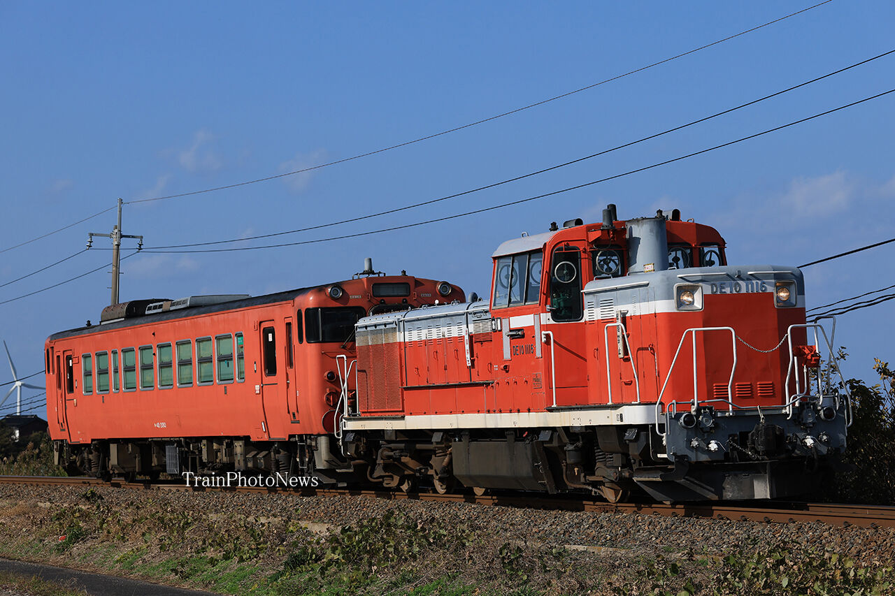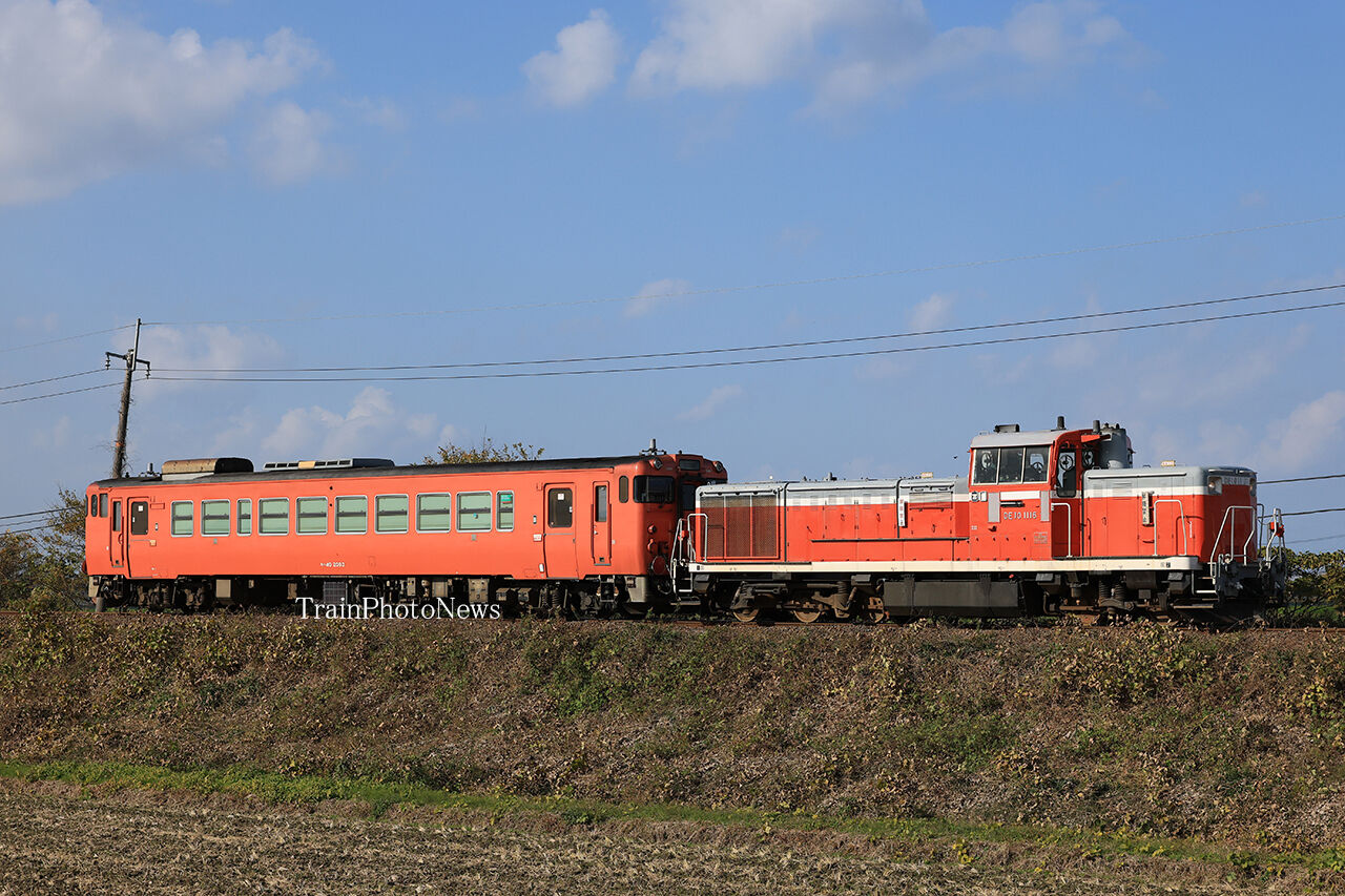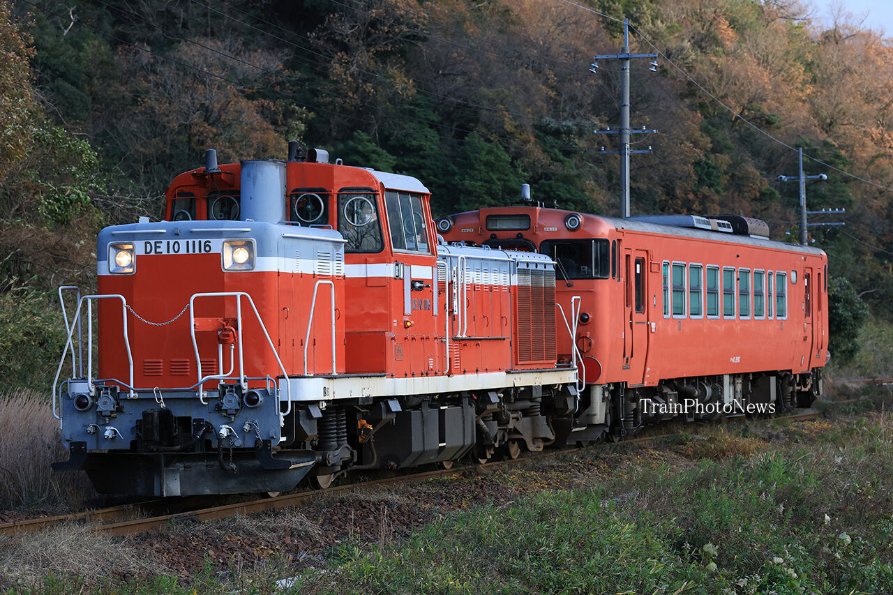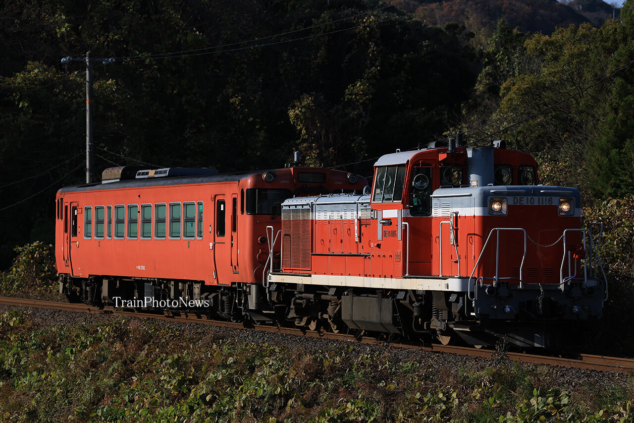 2025年12月07日 2025/12/7運転 キハ40-2093転属配給 配9944レ DE10-1116+キハ40-2093配9944レ DE10-1116+キハ40-2093配9944レ DE10-1116+キハ40-2093配9944レ DE10-1116+キハ40-2093配9944レ DE10-1116+キハ40-209312月7日、後藤総合車両所岡山気動車支所に所属するキハ40-2093が、金沢車両区富山支所転属のため米子〜豊岡間で配給輸送された。全区間で金沢車両区富山支所のDE10-1116が牽引した。 タグ :#JR西日本 カテゴリなしの他の記事 < 前の記事次の記事 >